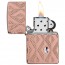 Inden for smykkedesign er rosaguld en fortsættende trend og kundefavorit. Nu tilbyder Zippo denne populære metalliske nuance i den populære Armor®-linje, hvilket giver mulighed for en dybere mere detaljeret udskæring og andre luksusprocesser. Denne lighter er indhyllet i et geometrisk diamantmønster, omkransende en diamantformet krystal på fronten.