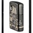 Denne Armor® High Polish Black Collectible skildrer den ikoniske Zippo bil i al sin pragt ved hjælp af vores Photo Image 360°-proces, som strækker designet rundt på alle sider af lighteren. Laser Two-Tone bruges til at afsløre Zippo-flammen og 75-års jubilæumsikonet i luksuriøse messingtoner, mens bilens skorsten er oplyst af en blændende Black Diamond-krystal, der er udvalgt specielt til Europa, Mellemøsten og Afrika. Endelig er den forgyldte indsats indgraveret med et gentaget Zippo-motiv for allerførste gang, hvilket adskiller dette samleobjekt fra alle andre før det. Hver lighter er fortløbende nummereret, har et luksus-bundstempel og kommer i en særlig samleremballage.